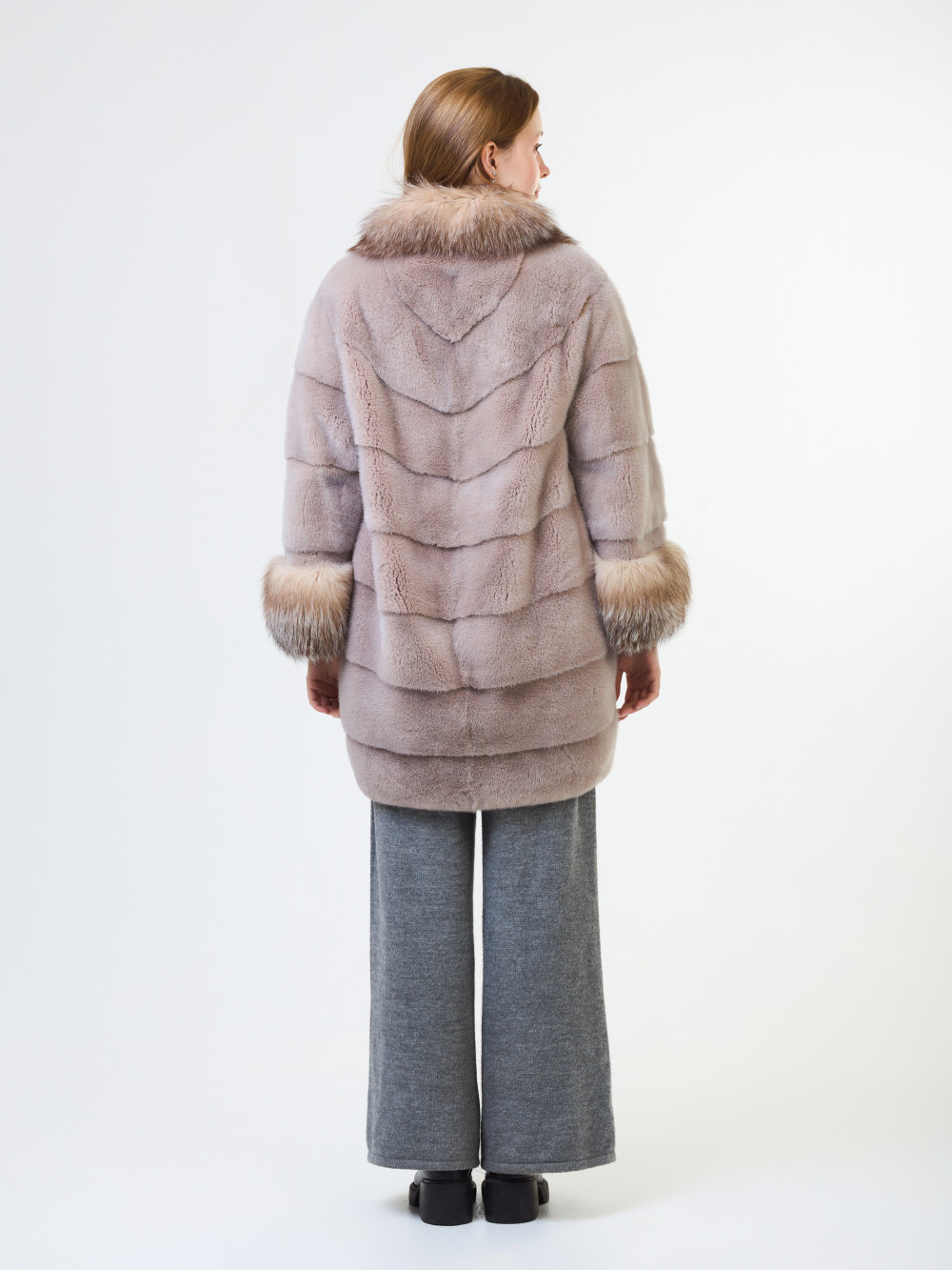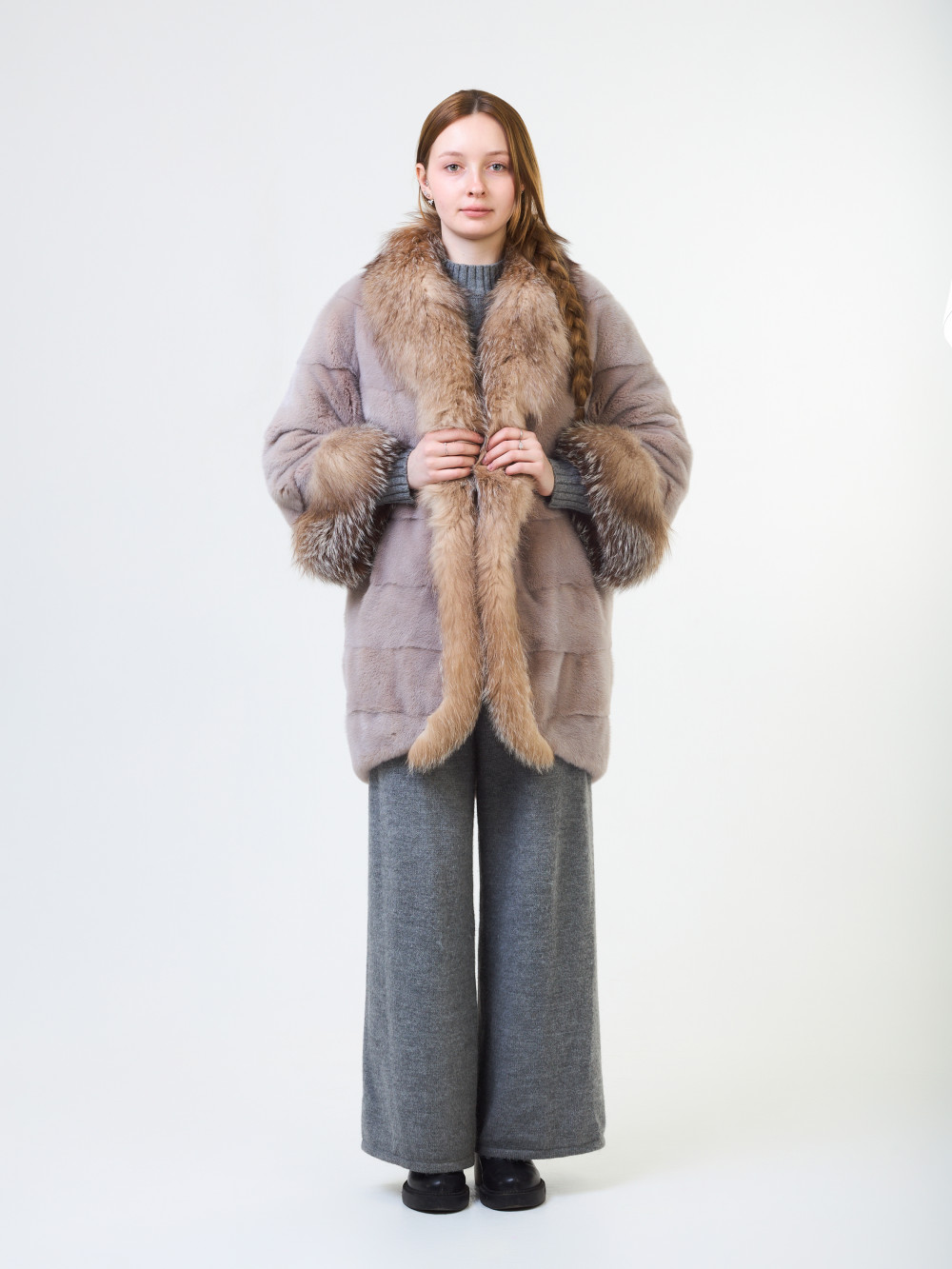 Шуба норковая б/у ELENA FURS пудра с лисой 46-48
