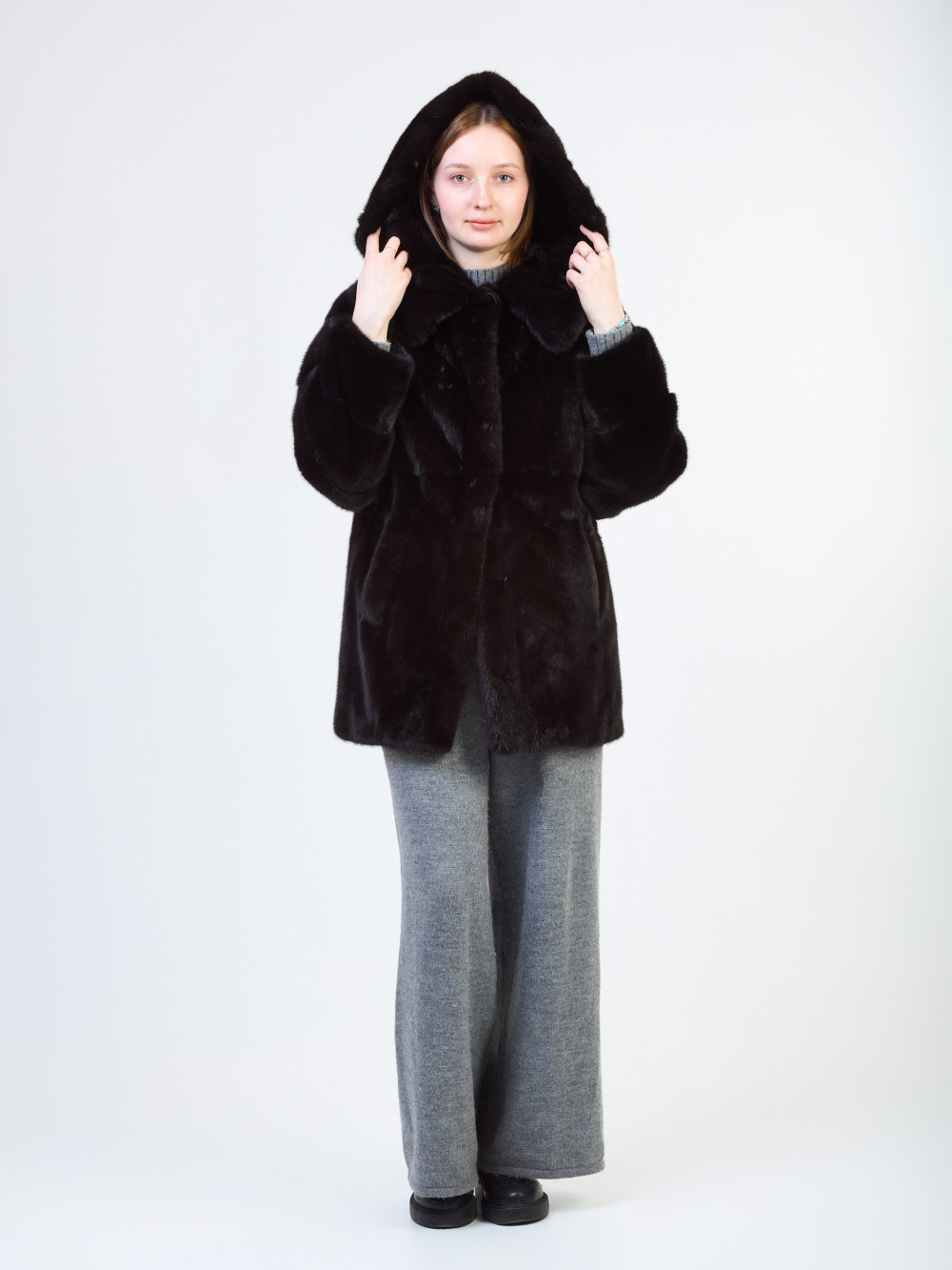 Длина изделия, см: 75 Длина рукава, см: 65 Объем груди, см: 110 Мех: Норка Цвет: черная не крашеная Износ: Без видимых дефектов...