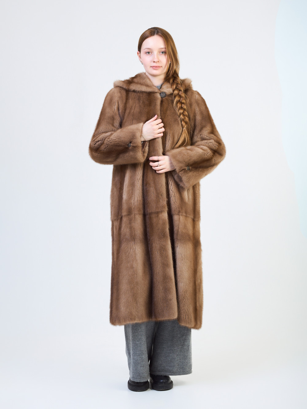 Шуба норковая б/у Flaumfeder 46р поперечка с капюшоном
