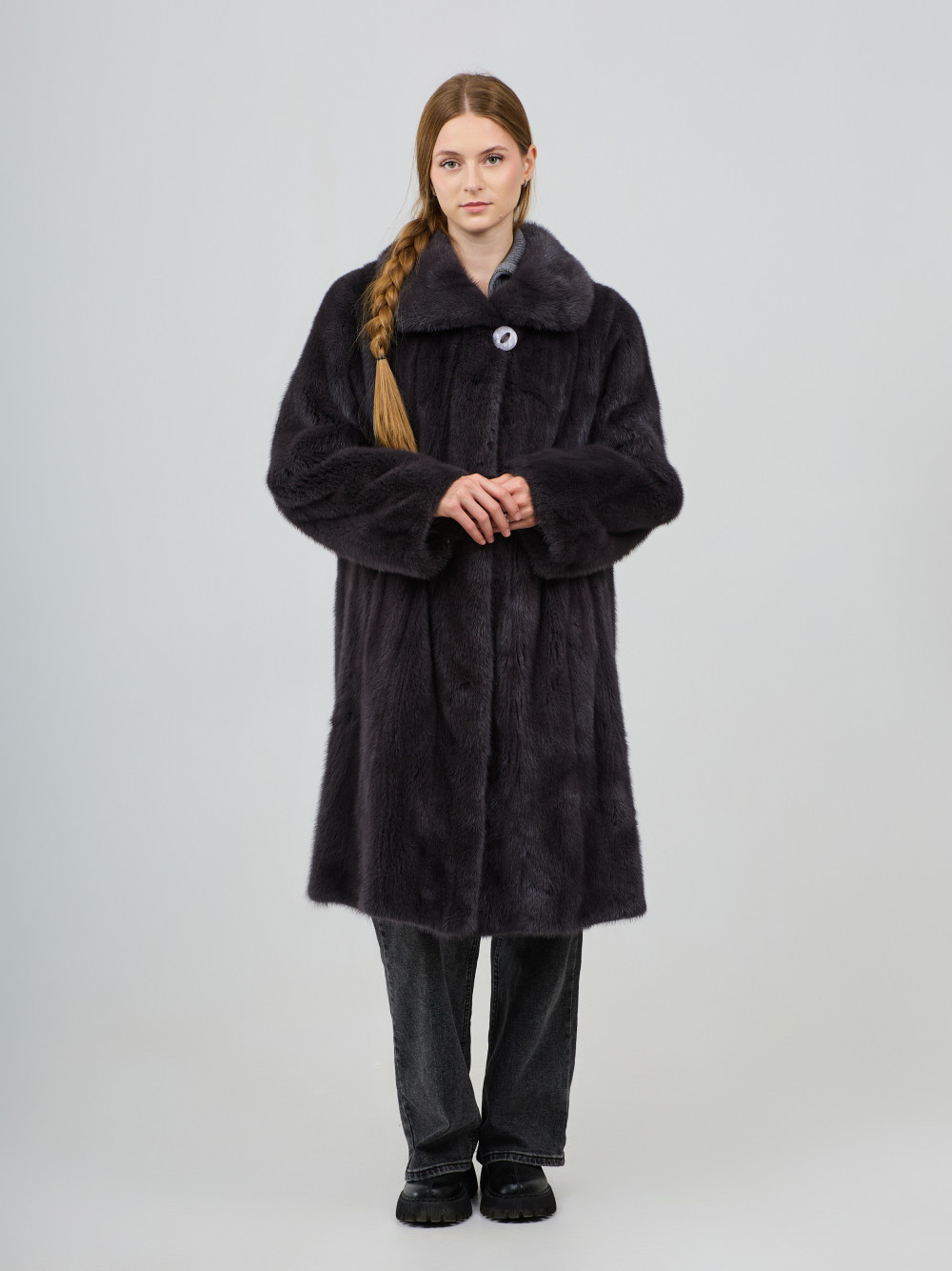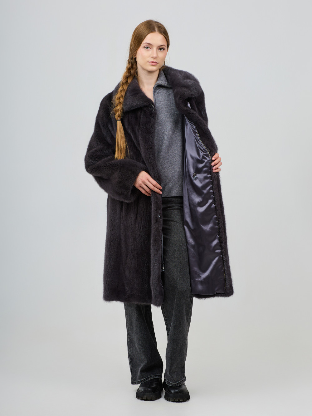 Длина изделия, см: 100 Длина рукава, см: 65 Объем груди, см: 125 Мех: Норка Цвет: графит (крашеный) Износ: Без видимых дефектов...