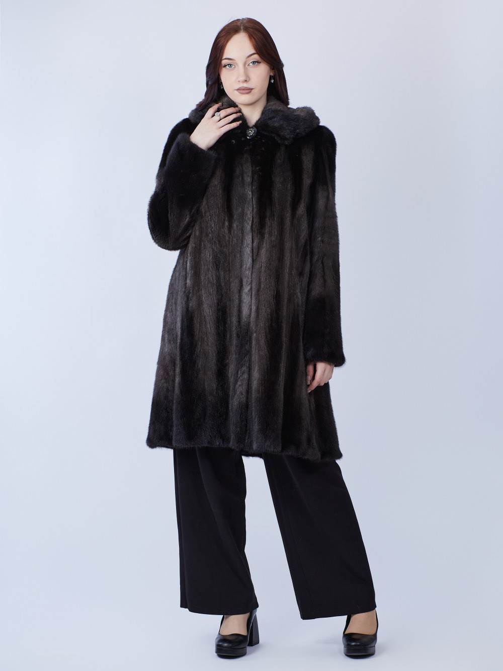 Длина изделия, см: 95 Длина рукава, см: 65 Объем груди, см: 110 Мех: Норка Цвет: темная крашеная Износ: Без видимых дефектов...
