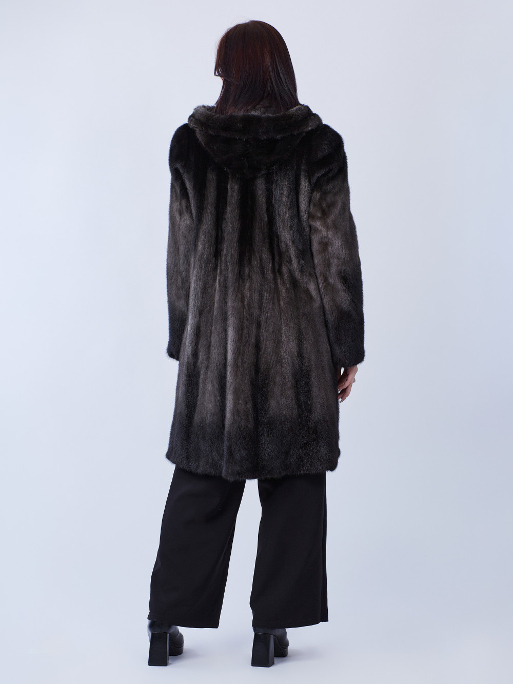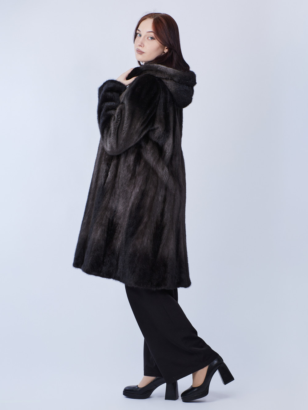 Шуба норковая б/у SHERO трапеция с капюшоном 54р
