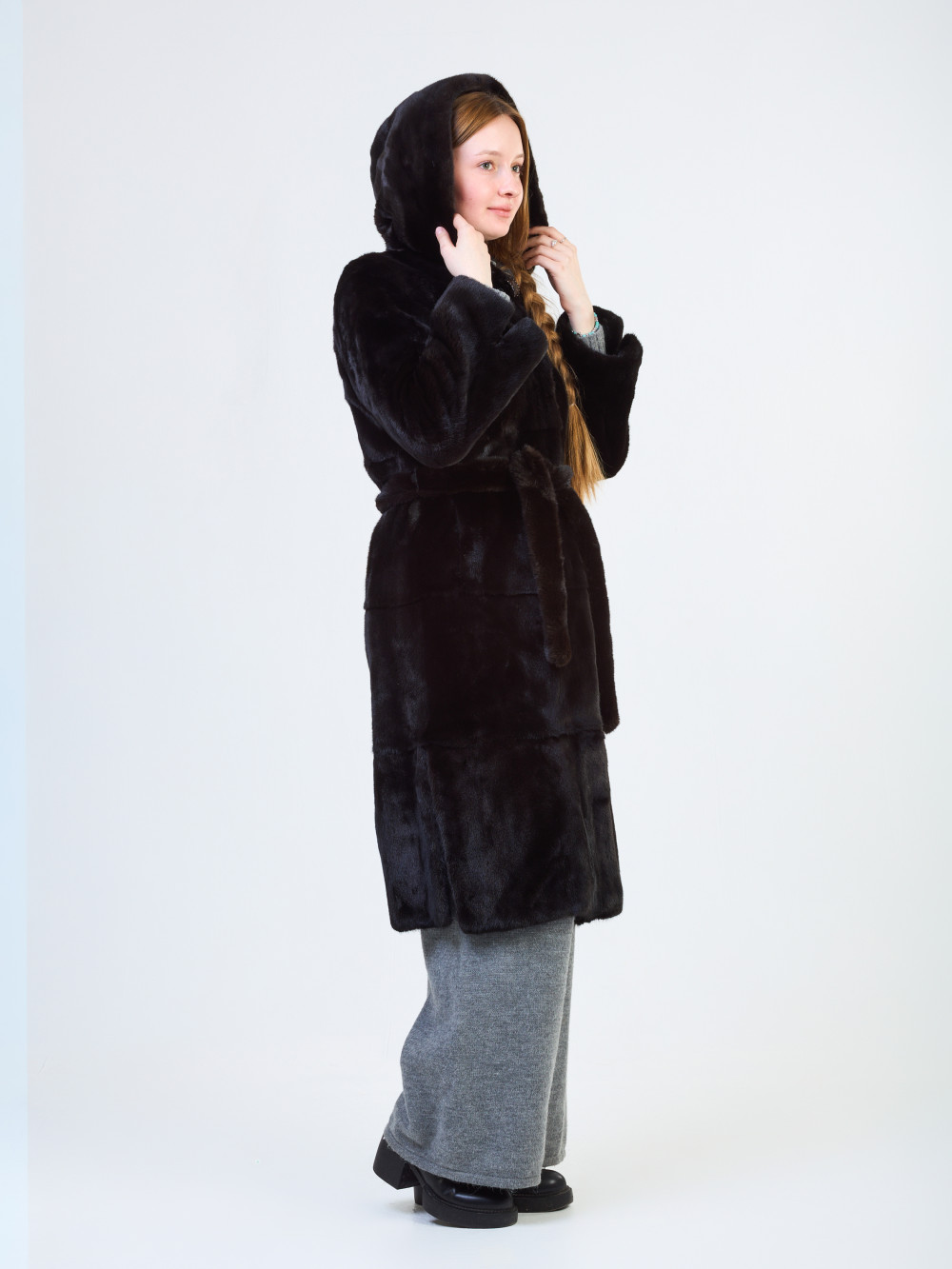 Длина изделия, см: 110 Длина рукава, см: 60 Объем груди, см: 104 Мех: Норка Цвет: коричневый (некрашеный) Износ: Без видимых дефектов...