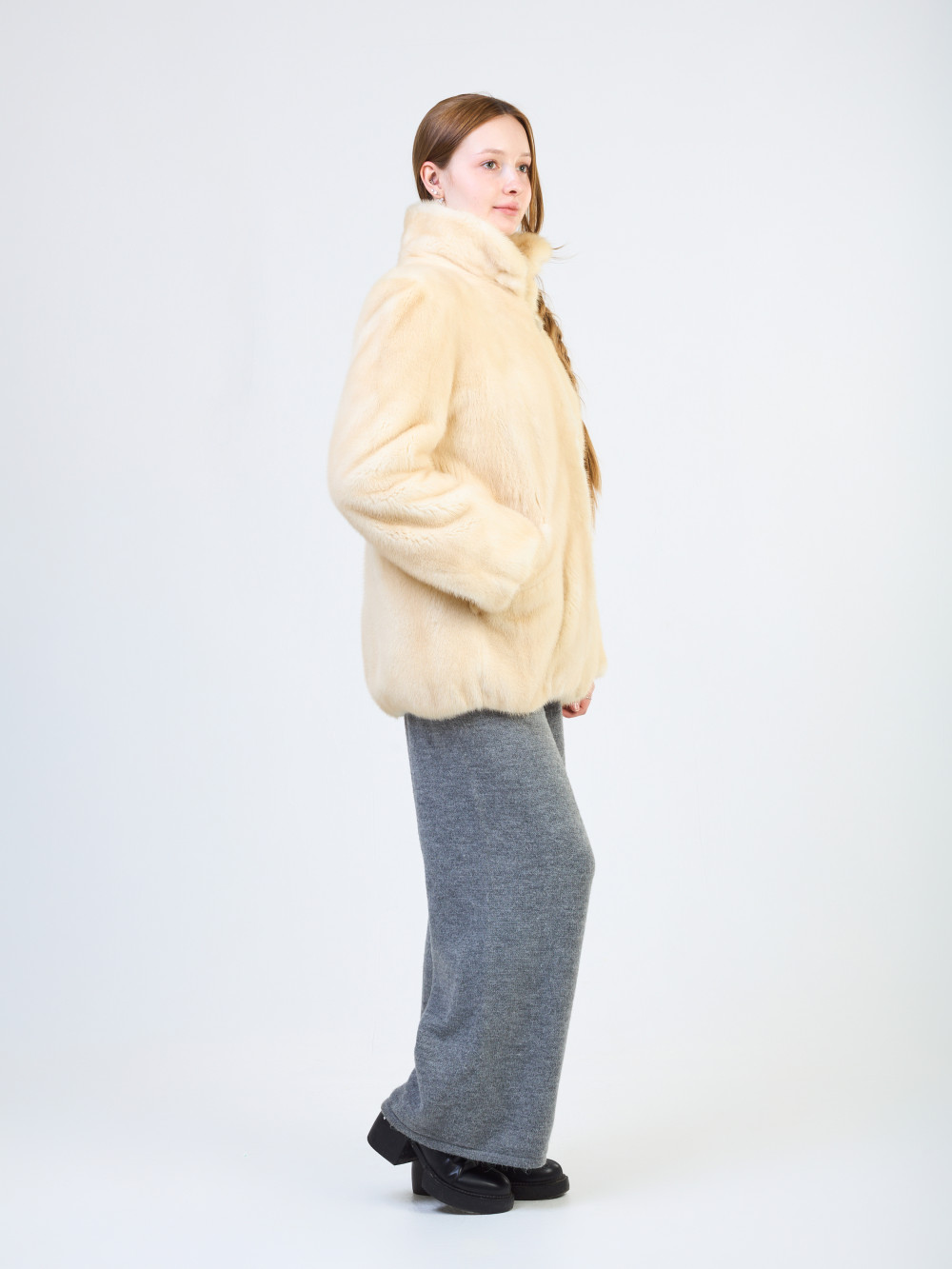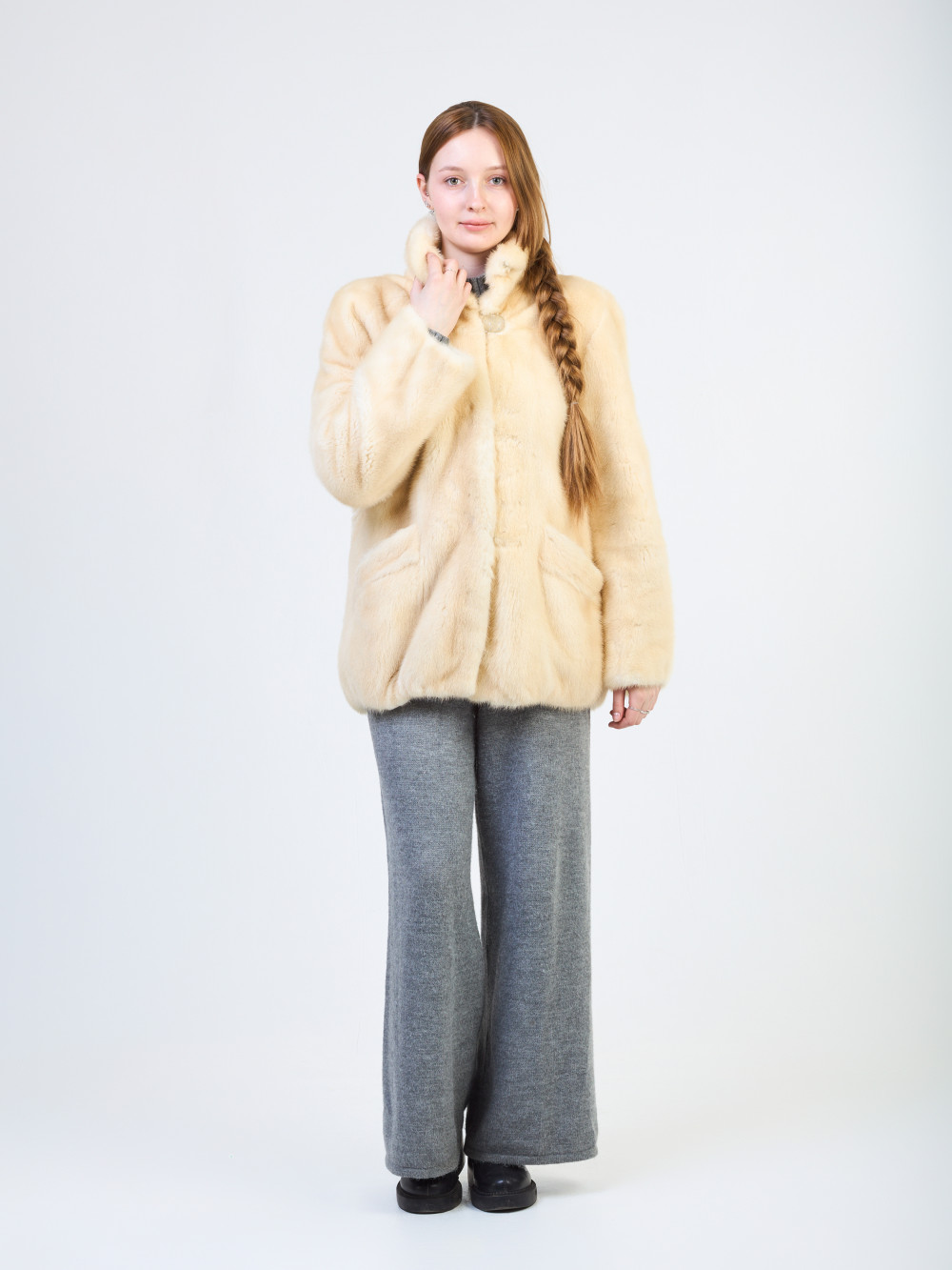 Длина изделия, см: 71 Длина рукава, см:65 Объем груди, см:110 Мех: Норка Цвет:светлый(натуральный) Износ: Без видимых дефектов...