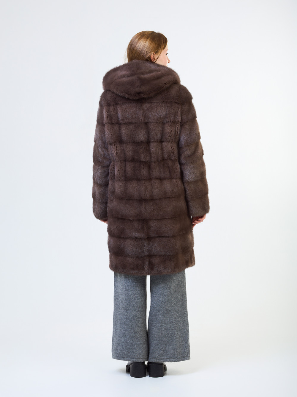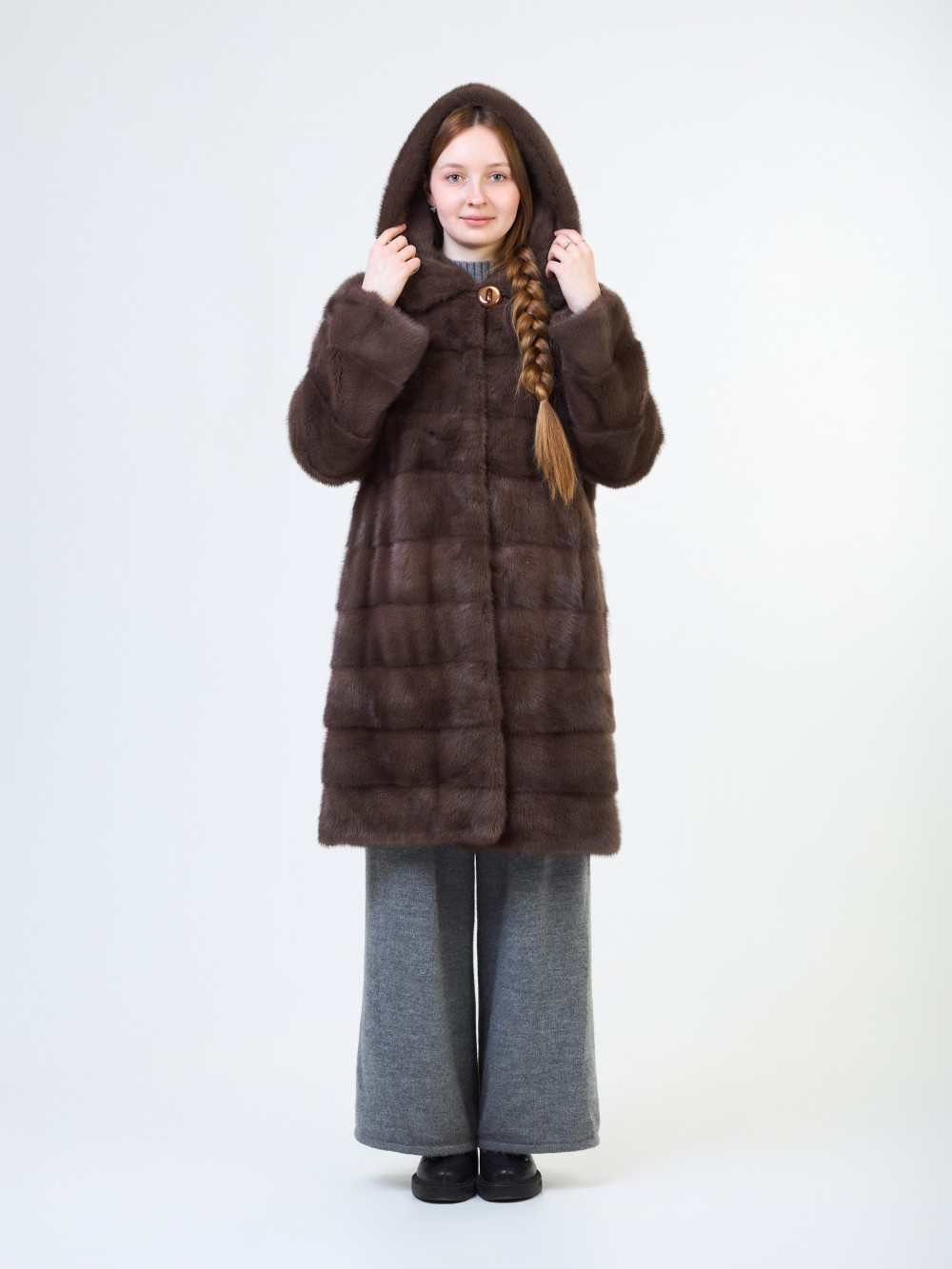Шуба норковая б/у SHADOW FUR 44-46р поперечка с капюшоном