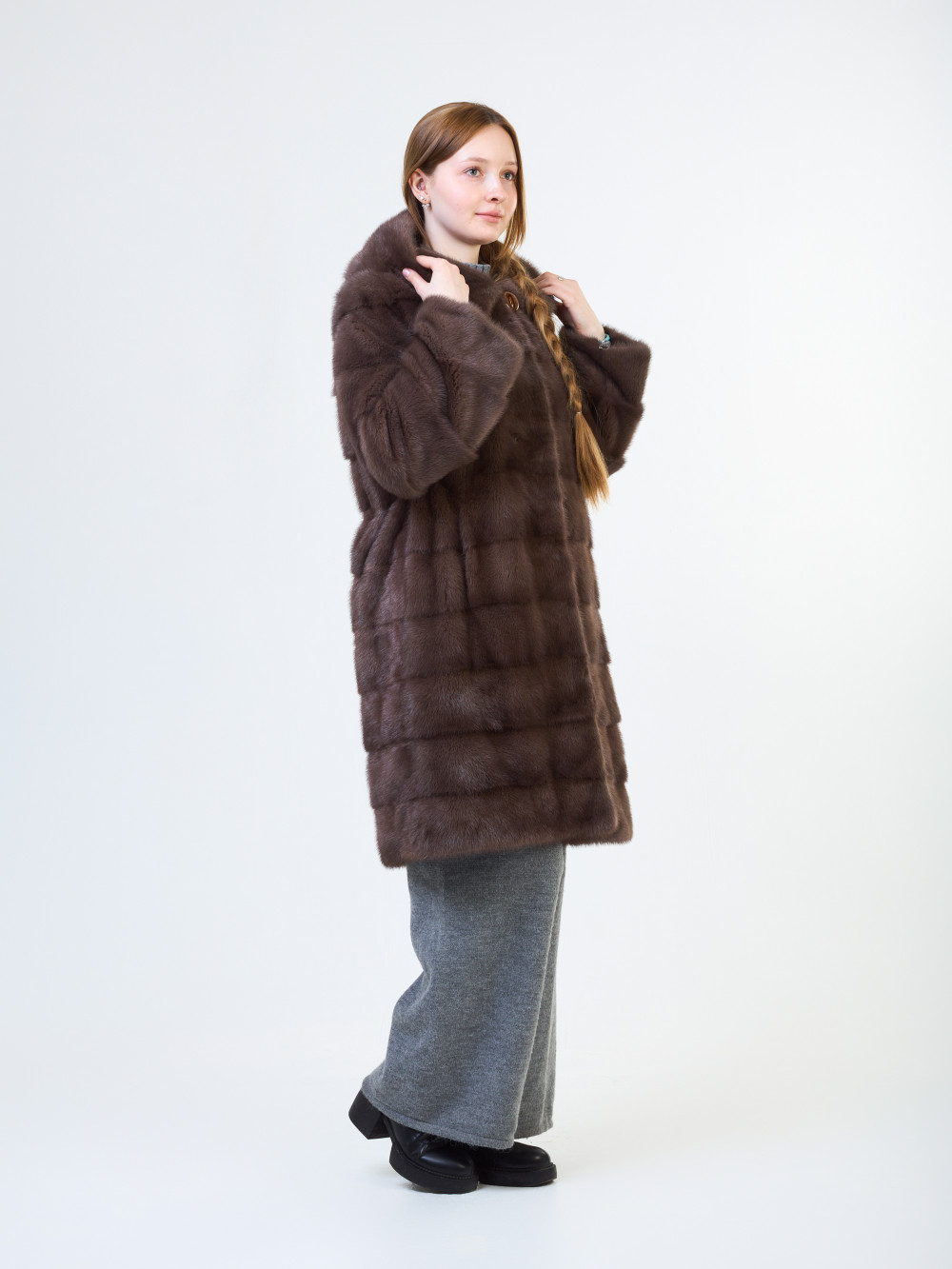 Шуба норковая б/у Fokos р 38-40 поперечка с кап
