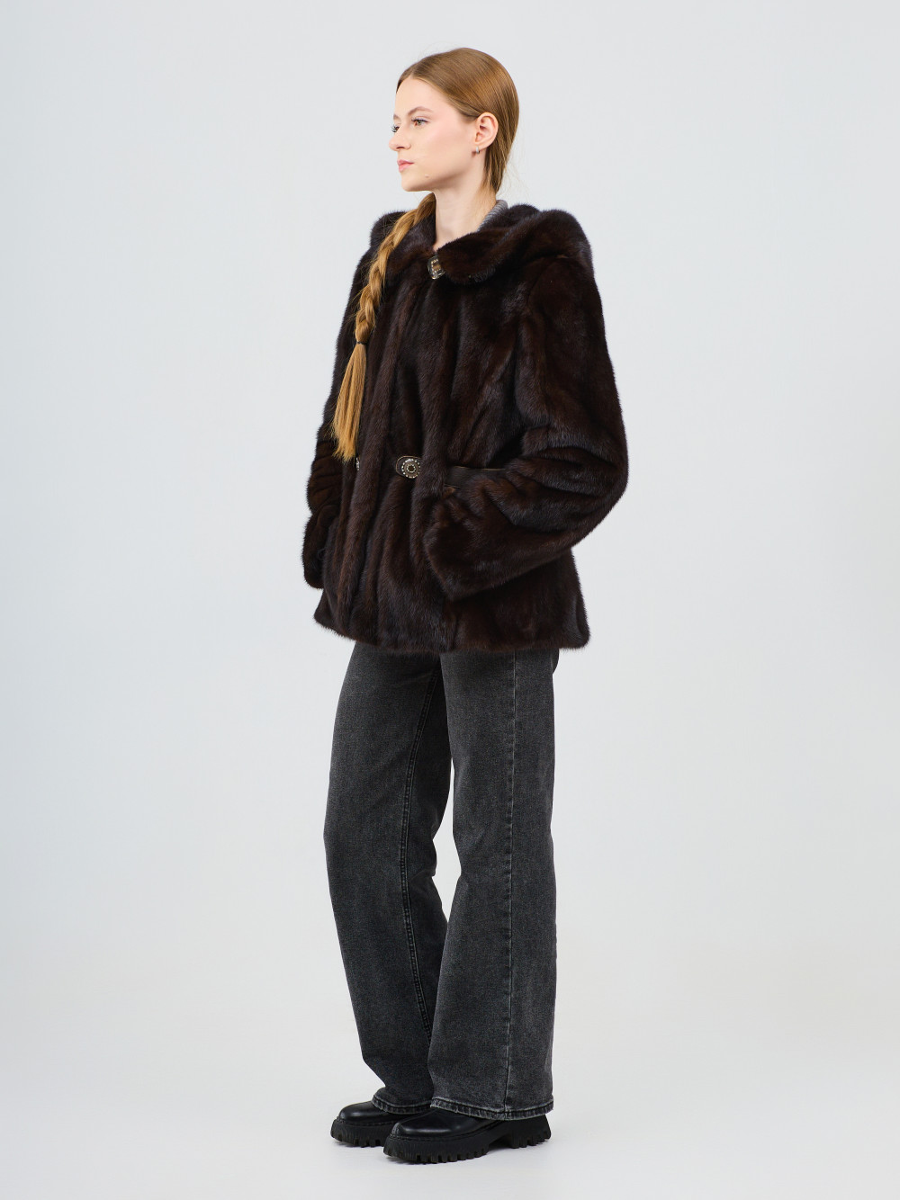 Длина изделия, см: 75 Длина рукава, см: 65 Объем груди, см: 110 Мех: Норка Цвет: коричневая не крашеная Износ: Без видимых дефектов...