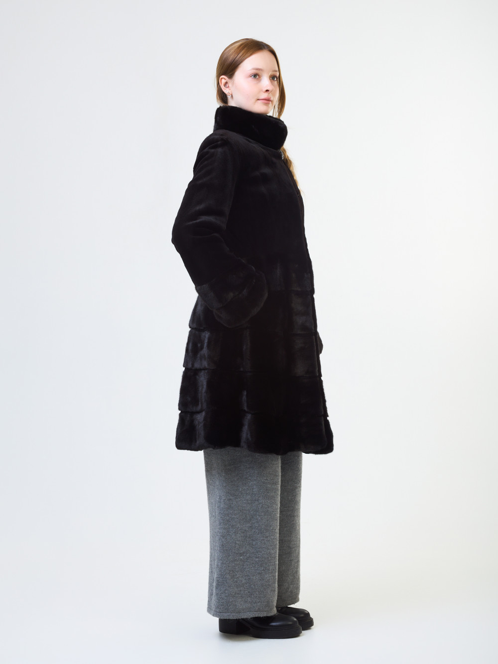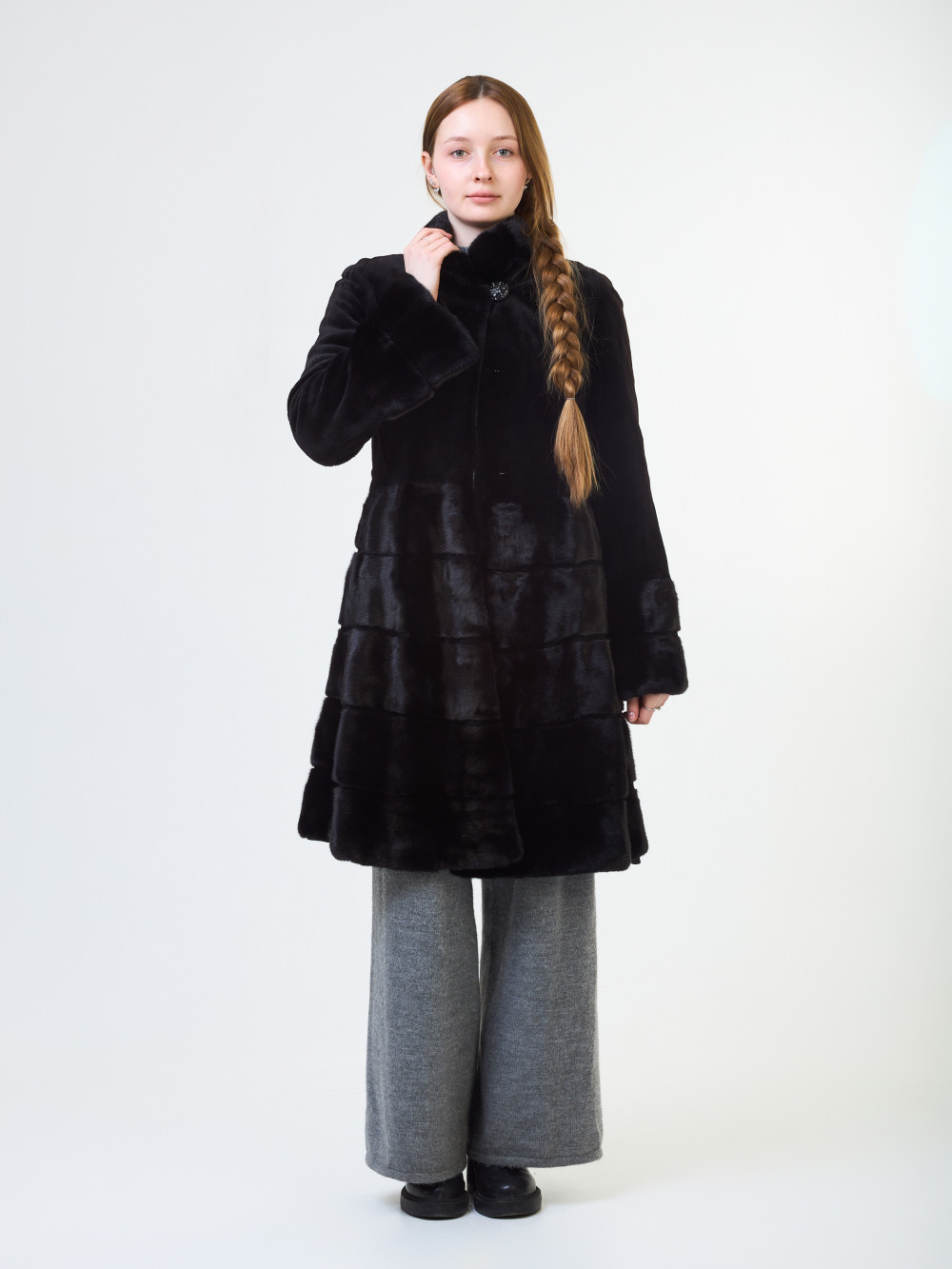 Шуба норковая б/у SAITIVIYA 42-44р верх стрижен. норка ,низ поперечн.