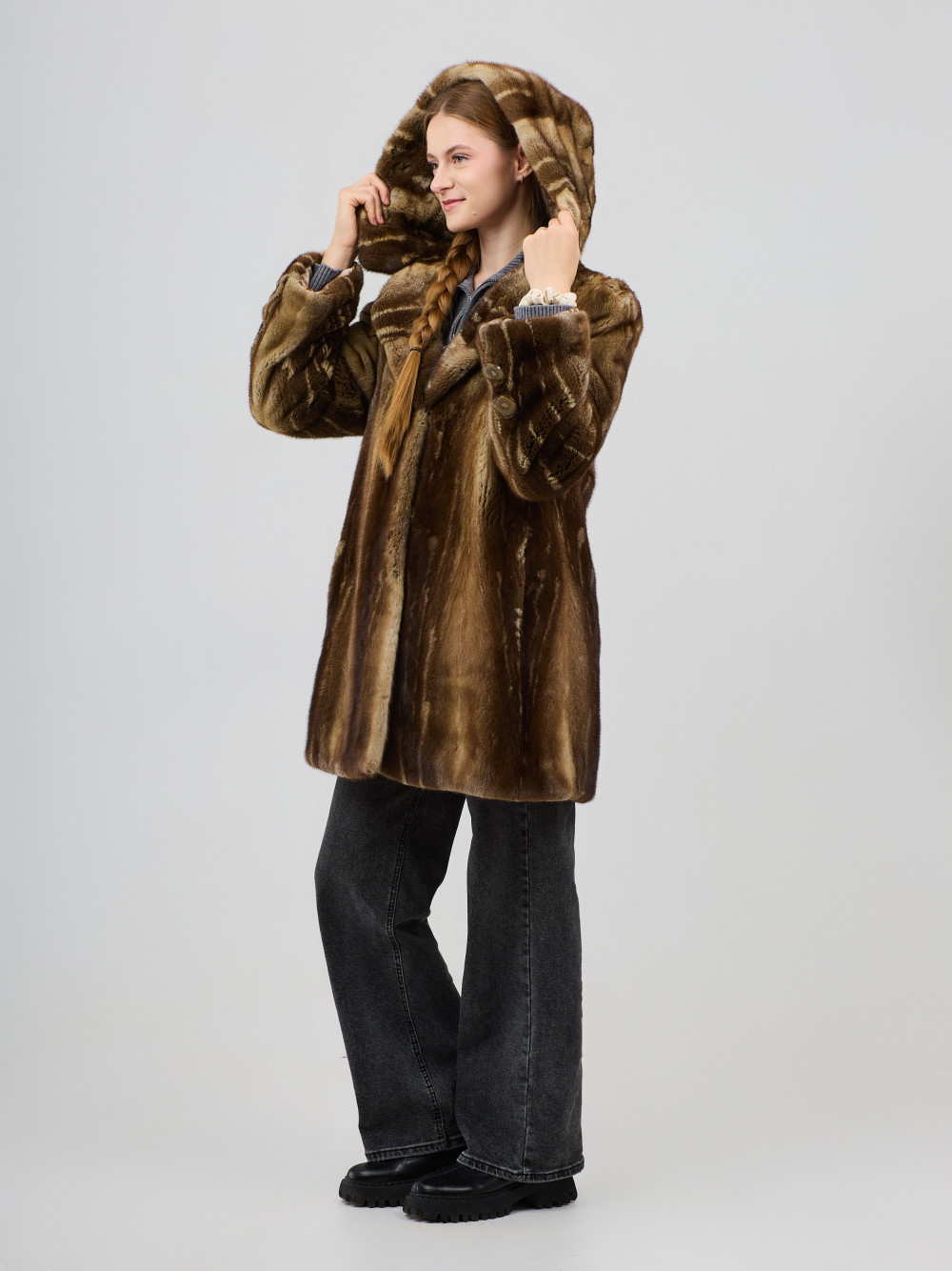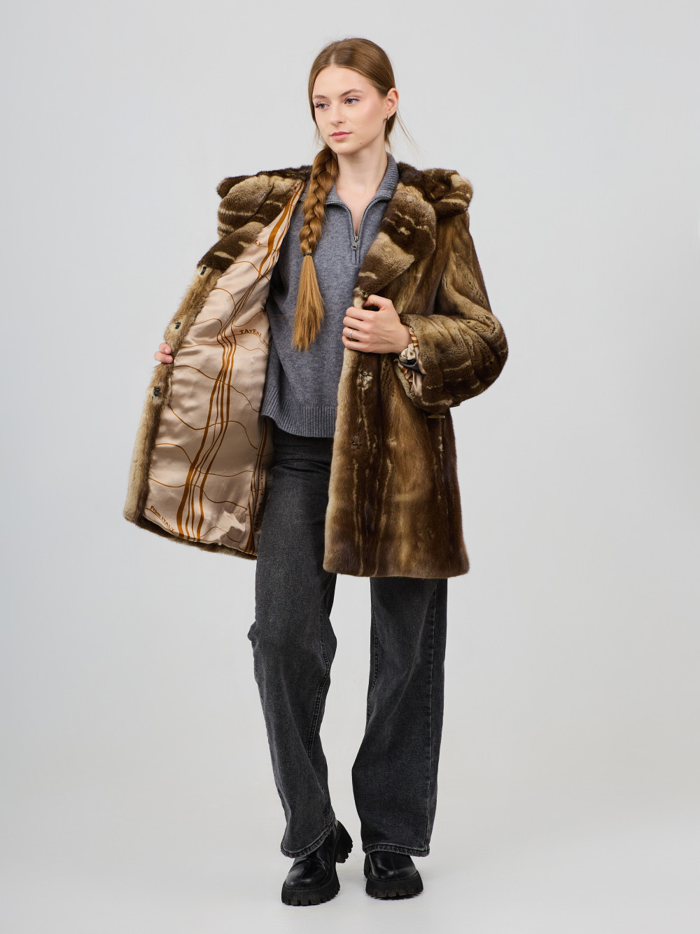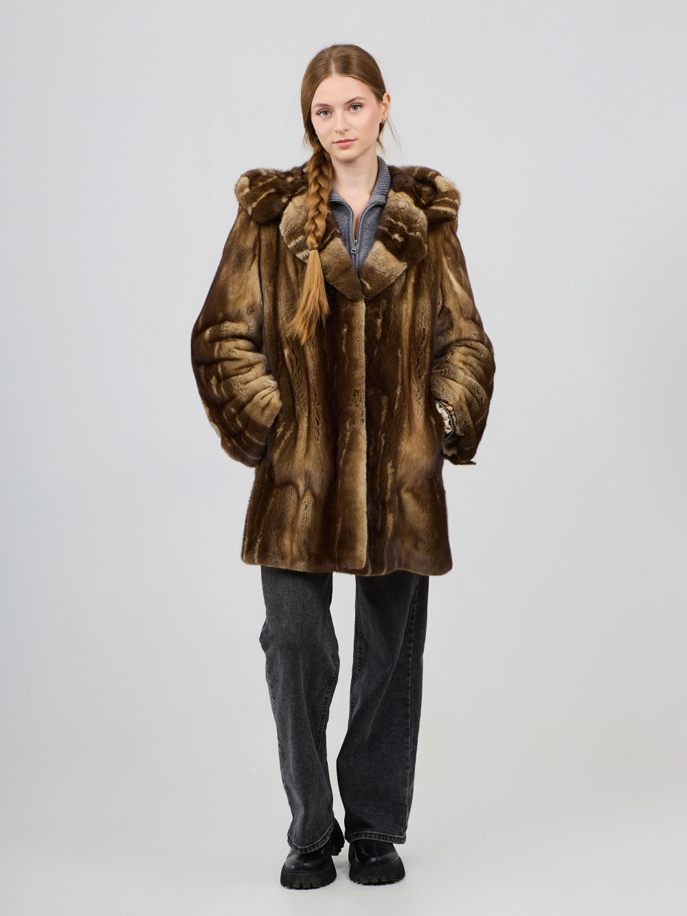 Длина изделия, см: 82 Длина рукава, см: 64 Объем груди, см: 110 Мех: Норка Цвет: коричневый Износ: Без видимых дефектов...