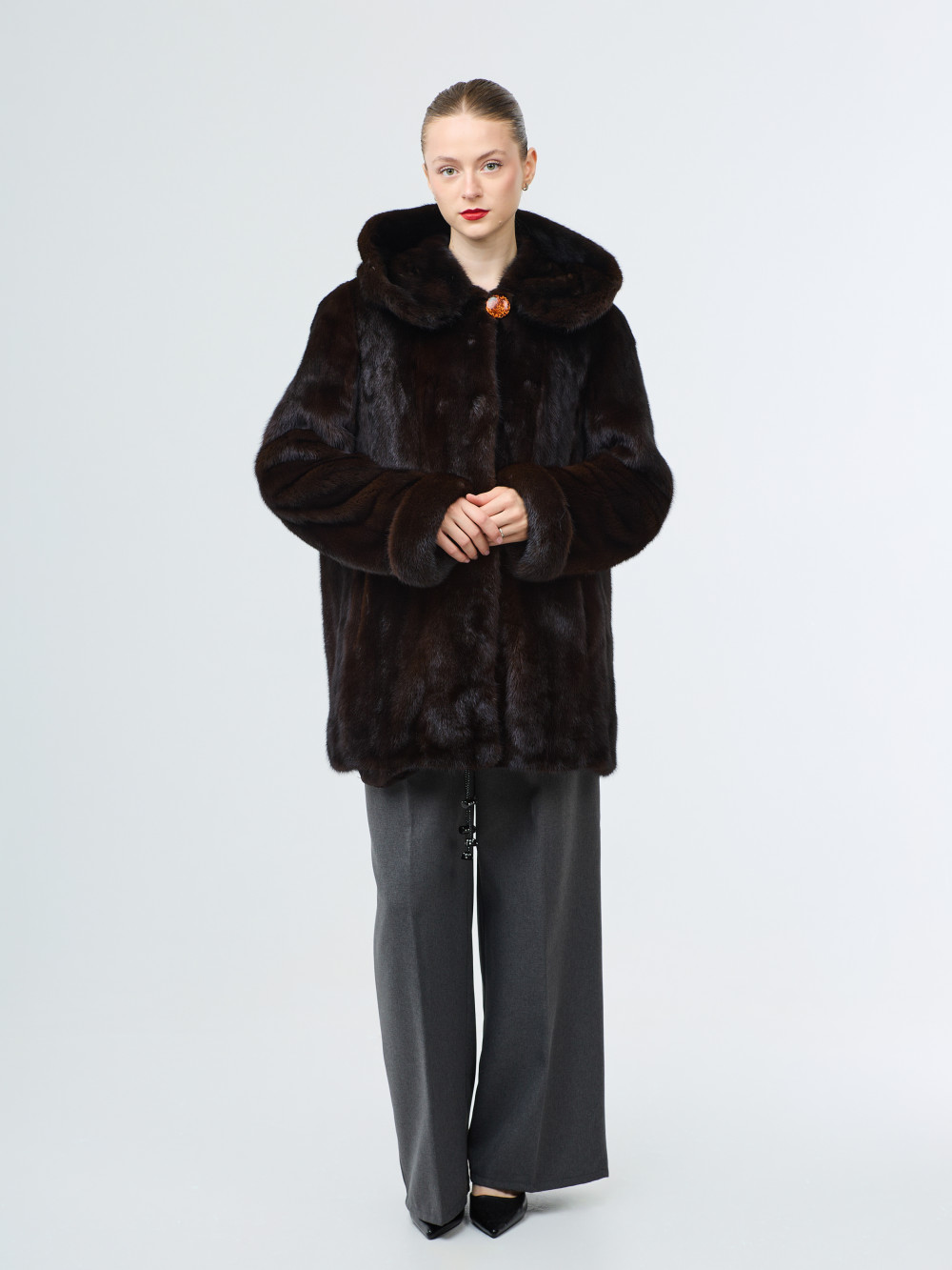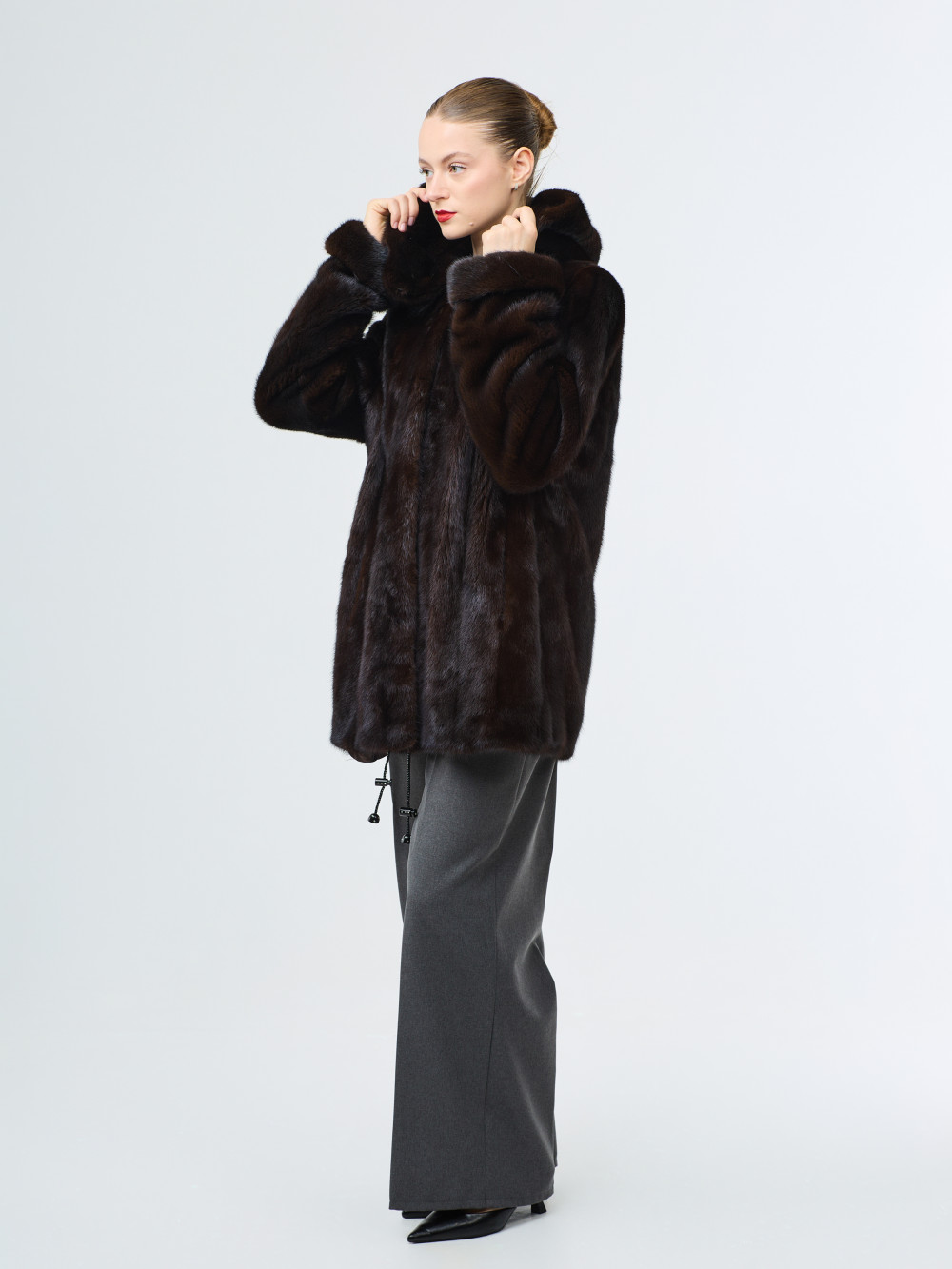 Длина изделия, см: 80 Длина рукава, см: 65 Объем груди, см: 120 Мех: Норка Цвет: коричневая норковая Износ: Без видимых дефектов...