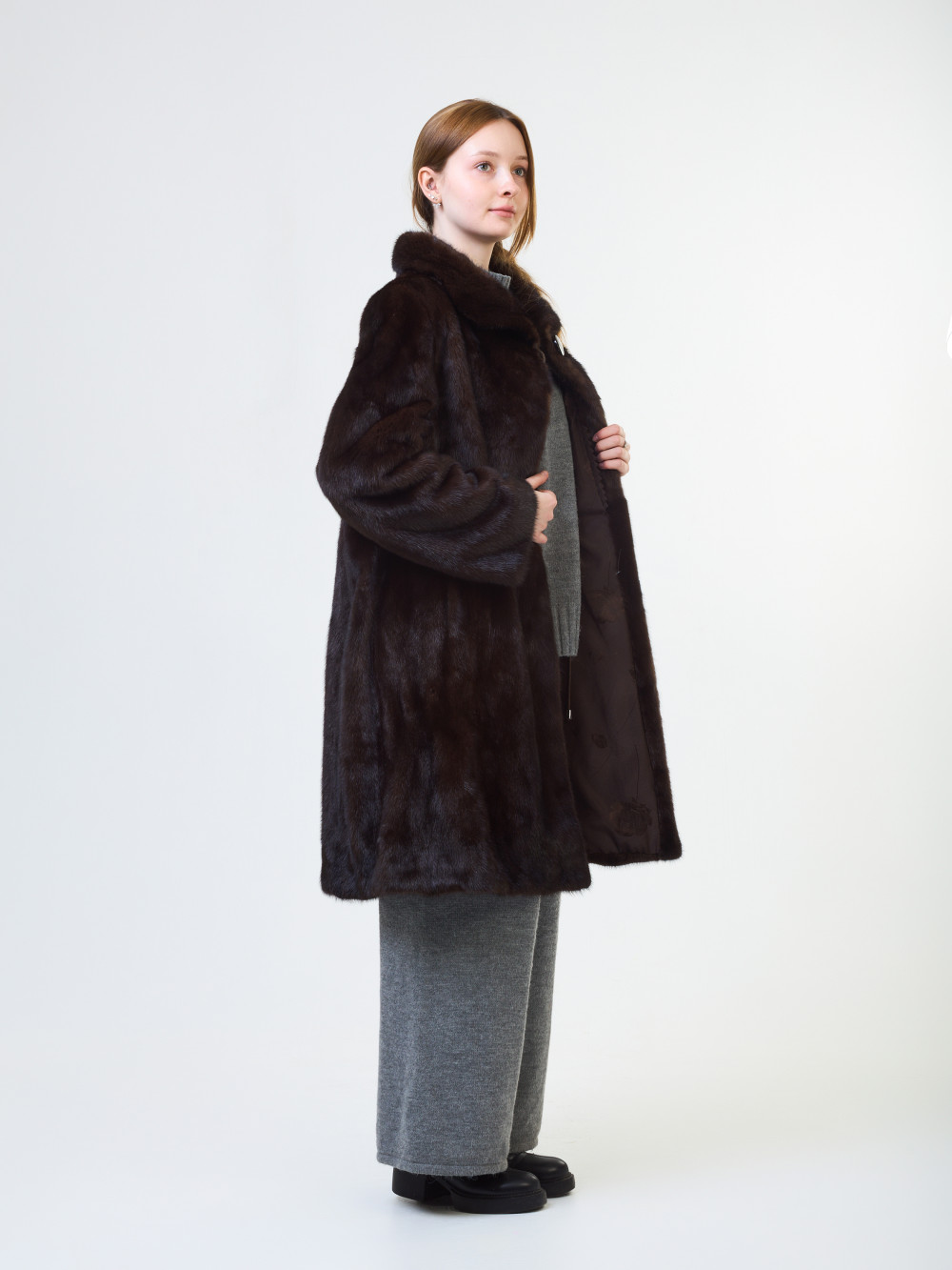 Длина изделия, см: 100 Длина рукава, см: 65 Объем груди, см: 120 Мех: Норка Цвет: коричневая не крашеная Износ: Без видимых дефектов...